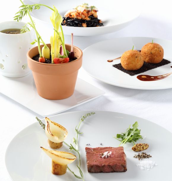 ワイキキ・ビーチ・ウォークにある「アランチーノ」や、ワイキキ・ビーチ・マリオット・リゾート&スパにある「アランチーノ・ディ・マーレ」とは趣が異なる、「アランチーノ・アット・ザ・カハラ」で、優雅なイタリアンをぜひお楽しみください。 |