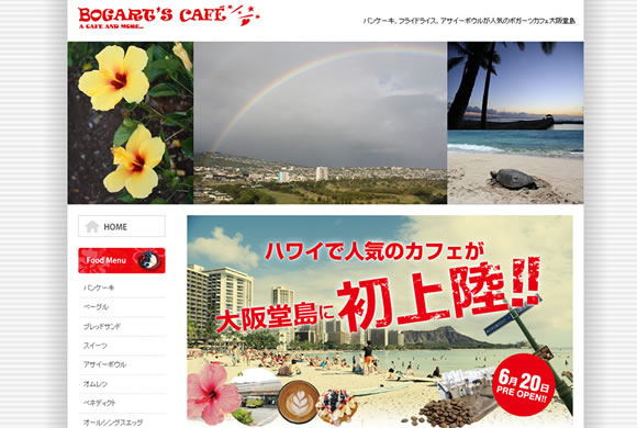 ダイヤモンドヘッドのふもとにある人気の「ボガーツカフェ」が昨日、大阪にオープンしました。 人気のパンケーキだけではなく、ふわふわのワッフルや、おいしくて体にもよいアサイーボウルも楽しめるそうですよ。場所は、ビジネスの中心地でありながら、川が流れ静かで美しい堂島にあります。まだまだ続くパンケーキ&ハワイのカフェ・ブーム。オープンエアのテラスは、これからの季節に、ぴったりですね。 |