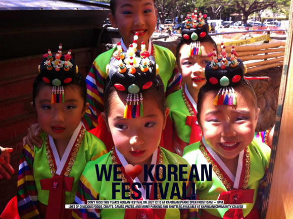 7月12日(金)と13日(土)、ワイキキのカピオラニ公園バンドスタンド付近で、「第12回コリアン・フェスティバル(韓国フェスティバル)」が盛大に開催されます。韓国舞踊やテコンドー(韓国武術)のデモンストレーション、伝統芸能の披露、韓国映画上映などとともに、カルビやビビンバ、キムチ炒飯などの美味しい韓国料理のブースも多数並びます。