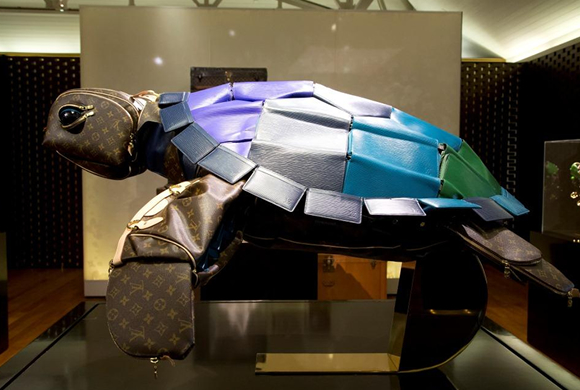 これらのオブジェは、なんとルイ・ヴィトンのバッグやスモール・レザーグッズ(ウォレットやコインパースなど)を利用して作られています。元々はロンドンのボンド・ストリート店を飾るオブジェとして作られたものですが、毎年増えるかわいい動物が評判を呼び、今ではルイ・ヴィトンの支店で巡回展示されるまでになりました。なんと、ハワイでの展覧会のために、ハワイのウミガメ「ホヌ」も仲間入りするそうですよ!