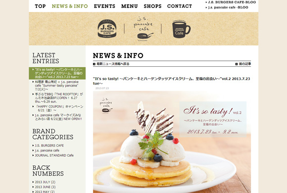 青山、渋谷、自由が丘、立川、湘南、みなとみらい、天王寺などに店舗を展開し、バリエーション豊かなパンケーキを楽しめるカフェ「j.s. pancake」で、アイスクリームをトッピングしたパンケーキが話題を呼んでいます。 現在楽しめるフレーバーが、グリーンティアイスクリームとあずきをトッピングし、抹茶ミルクソースをたっぷりかけた「グリーンティーミルク」と、メープルバニラのアイスをパンケーキの上にのせ、メープルシロップをかけた「メープルバニラ」。どちらも9月2日(月)までの期間限定です。 ●j.s. pancake |