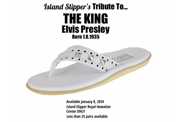 ハワイ生まれの老舗サンダルショップ「アイランド・スリッパー」から、新作サンダルが登場しました。その名も「ザ・キング」。永遠に語り継がれるロックミュージシャン、エルビス・プレスリーをモチーフにデザインされたもので、白いボディにキラキラと装飾されたサンダルは、まさにエルビスの雰囲気。 エルビスの誕生日1月8日にちなんで、昨日1月8日から発売され、25足限定です。同店はワードセンターズとロイヤル・ハワイアン・センターにありますが、このコレクションはロイヤル・ハワイアン・センターのみの取り扱いです。 |