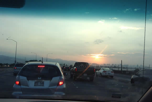 ハワイの渋滞はけっこうスゴイです。渋滞になる時刻を避けて、旅のプランを立てることをおすすめします!