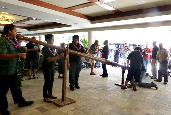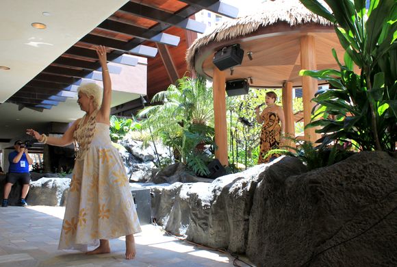 最後には長い間修繕中だったカヌー、ハワイロア号のステアリング・パドルの帰還を祝って華やかにショーが終了しました。 カニ・カ・ピラ・グリルでのハワイアン音楽の演奏は毎日午後6時~9時に行われています。また朝食やランチ、ハッピーアワーも営業しており、こちらも人気です。 |