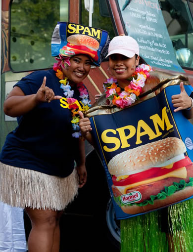 ハワイのローカルフードに欠かせないランチョンミートの缶詰「スパム」。スパムむすびはハワイの人々になくてはならないスナックです。ハワイ州の一人当たりのスパム消費高は全米一高く、毎年約700万缶ものスパムが食べられているとか! スパムジャムがハワイ州で実施されるようになったのもその人気によるもので、昨年はおよそ2万5千人の旅行者や地元の人々が参加しました。ハワイならではのユニークなお祭りを体験してみませんか? |
