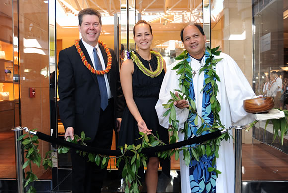アラモアナセンター内、センターステージ近く2階と3階にある「ルイ・ヴィトン」のお店が新しく生まれ変わり、4月19日(土)にハワイ式のブレッシング(お清め)が行われました。
