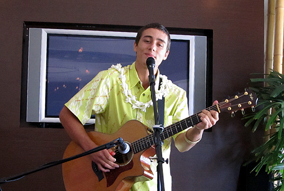 このメレ・メイの幕開けを祝って、4月29日(火)にヒルトン・ワイキキ・ビーチにて、キック・オフ(開幕)イベントが行われました。会場では、人気急上昇中のショーン・ロビンス(写真1番上)、ハーモニーが美しいカイホル(写真2番目)、爽やかな歌声が魅力のマイラニ(写真3番目)、渋い大人の魅力とハリのある声が人気のチノ・モンテロ(写真4番目 –5月2日にお亡くなりになりました。ご冥福をお祈りいたします)と、錚々たるミュージシャンが美しい歌声を響かせ、メレ・メイの幕開けを華やかに祝いました。