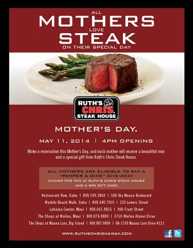 Ruth's Chris Steakhouse's Offers Mather's Day Dinner