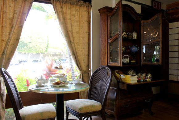 このお店は、ワードウェアハウスエリアにある店舗「ナ・メア・ハワイ」という店の奥にひっそりとある、穴場的スポット。「ナ・メア・ハワイ」店内ではアロハウェアやハワイに関する本や絵はがき、ハワイ産のコスメなども充実しており、ハワイ土産を探しに出かけて、ここでティータイムを一息とるというのもおすすめです。 |