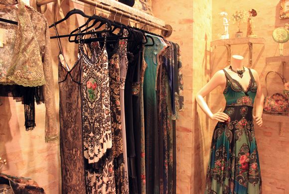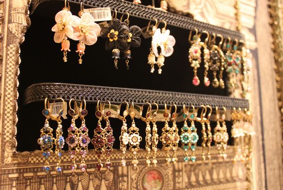キュートでゴージャスな店内には、ピアス、ブレスレット、ネックレス、ヘアアクセサリーのほか、ワンピースやランジェリーなどが揃っています。