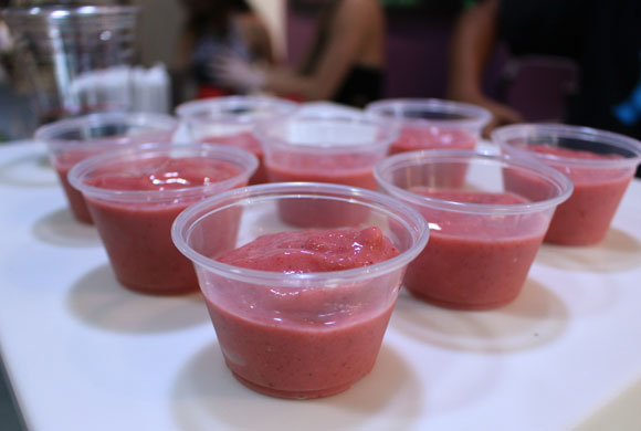 こちらは「ダイアモンドヘッド」という名前のスムージー。ストロベリー、パイナップル、バナナ、アップル、豆乳にミントの香りがほんのりと爽やかな風味です。 更に50セントを足すと、ハニー、フルーツ増量、プロテインを加えることもできます。