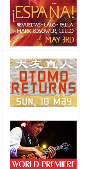 ハワイを代表する交響楽団「ハワイ・シンフォニー・オーケストラ」は、この5月と6月に世界各地から巨匠を迎え、ホノルル市内のニール・ブレイズデル・コンサートホールで、素晴らしいコンサートを行います。 ■関連情報/ 【話題】ハワイ・シンフォニー・オーケストラと日本の琴が競演! まず、5月3日(日)の午後4時からは、「エスパーニャ」と名付けられた、スペインをテーマとしたコンサートが開かれます。カリスマ指揮者のCarlos Miguel Prietoとチェロの巨匠Mark Kosowerを迎え、情熱的なスパニッシュナンバーを披露します。 5月10日(日)の午後4時からは、昨年に引き続き日本を代表する指揮者の大友直人が登場。群馬交響楽団音楽監督や東京交響楽団常任指揮者などを兼務し、京都市交響楽団初の桂冠指揮者の称号燃えている大友氏が、ピアニストのOrion Weissとともに、モーツァルトのピアノ協奏曲第25番をお届け。芥川也寸志「弦楽のための三楽章」も演奏されます。 春のシーズンを締めくくるのは、世界的に有名なハワイ出身のウクレレ奏者、ジェイク・シマブクロ。6月6日(土)の午後8時と6月7日(日)の午後4時の2回にわたりコンサートが行われます。コンサートでは、ワールドプレミアとなるバイロン・ヤスイ氏の「ウクレレ協奏曲第1番」を演奏。また、指揮者にJoAnn Fallettaを迎え、交響曲第1番ニ長調「巨人」も披露。魅力たっぷりのクラシック音楽をハワイで楽しんでみませんか? 詳細とチケット購入はハワイ・シンフォニー・オーケストラのウェブサイトをご覧ください。 |