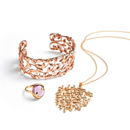 その名の通り、オリーブの葉をデザインした繊細なデザインは、フェミニンでエレガント。身に着けるだけで幸せな気分になるジュエリーばかり。素材によりお値段の幅も広く、ペンダントやカフ・ブレスレット、イヤリングやリングなどが揃います。