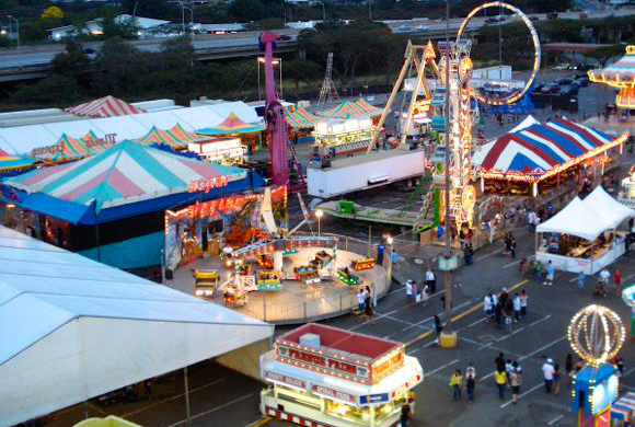 「50thステートフェア」はハワイが50番目の州として認可されたことを記念して毎年開催されているもので、移動遊園地やゲームコーナー、ライブエンターテインメント、特別ショー、さらにカーニバルならではのおいしいフードブースが多数出店し、お楽しみ満載のイベントとなっています。