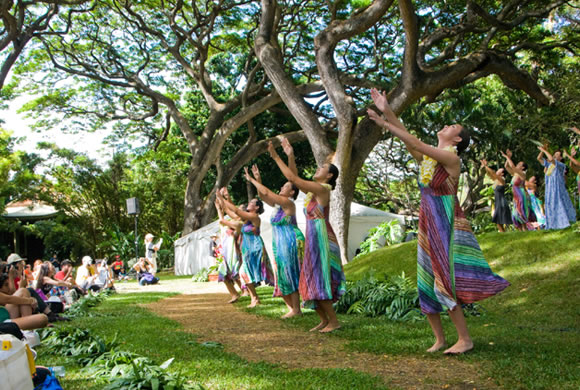 モアナルア・ガーデンは緑豊かで美しく整備された気持ちの良い公園で、ホノルル国際空港をずっと山側に行ったモアナルア地区にあります。木漏れ日の中、選び抜かれたフラ・ハラウ(フラ教室)による、レベルの高いフラ・パフォーマンスを楽しんでみませんか? 会場ではハワイのローカルフードや軽食が販売さえるほか限定版のTシャツやお土産模範倍されます。
