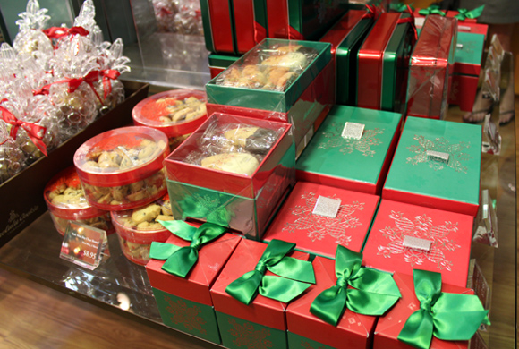 ホノルル・クッキー・カンパニーのホリデー限定商品は、ペパーミント・クッキーにチョコレートをかけたもの。オルゴールのようなボックスやオーナメント型など、この時期限定の素敵なパッケージに入ったギフトセットがいっぱいです。これからの季節、ギフトとともに、あたたかなアロハの心を贈りたいものですね。