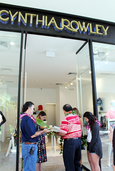 アラモアナセンターのエヴァウィング2階に本日、ニューヨーク発のおしゃれなライフスタイルブランド「Cynthia Rowley(シンシアローリー)」がオープンし、ハワイアン・スタイルのブレッシング(お清め)が行われました。