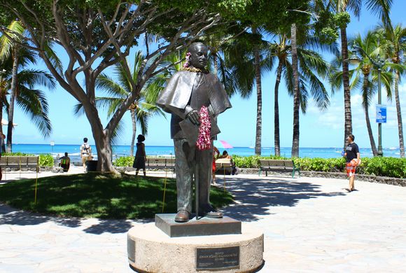 また、前日の3月25日(水)午前7時30分から8時30分まで、ワイキキにあるプリンス・クヒオ像(写真)にレイをかけるセレモニーも行われます。プリンス・クヒオ像はカラカウア通り沿い、カピオラニ公園寄りのワイキキビーチ・マリオットの向かいあたりにあります。この時期ワイキキに滞在中の方は、パレードやレイ・セレモニーをチェックするのも面白そうですね。