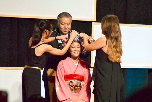 ハワイの春の恒例行事で、今年で64回目を迎える「ハワイ桜まつり」を締めくくる「フェスティバルボール」が昨日、シェラトン・ワイキキのボールルームで華やかに開催され、800名以上の人が新桜まつりの女王(チェリー・ブロッサム・クイーン)の誕生を祝福しました。「桜まつり」とは、ハワイ日系人青年商工会議所(HJJCC)主催で、日系人女性のなかから桜まつりの女王を決定するコンテストとそれに伴う行事の総称。毎年、日本に関する見識と美しさ、知性を兼ね備えたクイーンとコート(プリンセスたち)が選ばれています。
