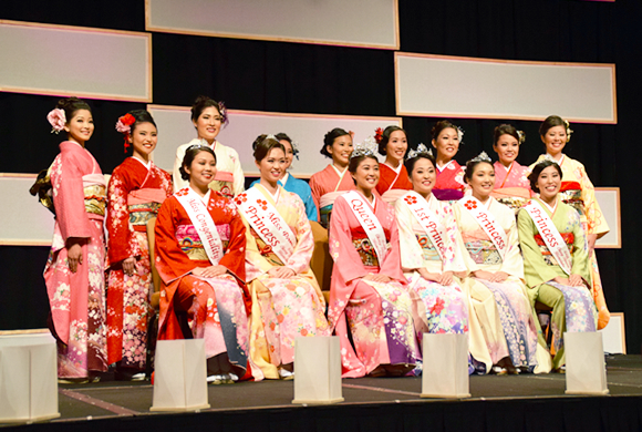第64代女王に選ばれたのは、Alexis Sayuri Okihara (アレクシス・サユリ・オキハラ)さん。小学校の先生を務める活動的で爽やかな女性です。また、女王とともに、コート(プリンセスたち)も選出されました。第1プリンセスには、Brittney Yasuko Kawahara(ブリトニー・ヤスコ・カワハラ)さん、プリンセスには、Ritsuko Sarah Tomari(リツコ・サラ・トマリ)さん、Kristi Kiyo Murakami(クリスティ・キヨ・ムラカミ)さん、Asia Rei Katsura Ayabe(アジア・レイ・カツラ・アヤベ)さんが選ばれました。アヤベさんはまた、ミス・ポピュラリティー(一番人気があった人)にも選ばれています。さらに、ミス・コンジニアリティー(一緒にいていちばん楽しかった人)には、Dylan Katarina Lau(ディラン・カタリナ・ラウ)さんが選ばれました。