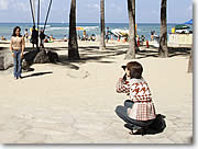さて、気に入ったデジカメが見つかったら、本体だけでなく予備バッテリーと予備のメモリーカードも必ず用意しましょう。バッテリーの予備はできれば2本、メモリーカードは滞在日数とデジカメの画素数に合わせて大容量の物をタップリ。ハワイでもメモリーカードからCD―Rへのデータ書き込みサービスもありますが、なるべくオリジナルの画像のまま自宅に持ち帰ってから保存したいものです。バッテリーはあらかじめ何回か使って放電、充電を繰り返しておきましょう。最初の数回は本来の性能が出ないものです。次回は、デジカメの基本的な操作方法と撮影の説明です。