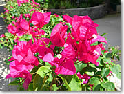 ■マクロ撮影の裏ワザをプロが伝授 今度は色鮮やかなブーゲンビリアの植え込みです。最初はズームを望遠側にして(もちろんマクロモードですよ)いましたがアップになりすぎて何だかよくわからなくなってしまったのでズームをワイド側にして少しだけ距離をあけてバックとの遠近感を出してみました。作例はサイズが小さいのでわかりにくいですが大きくするとバックはきれいにボケています。 このようにメインの被写体をいろいろな角度や光線から見て、さらにズームの角度を変えたりめいっぱい寄らずに少し引いたり工夫して撮ってみましょう。ちょっと頑張れば自分だけの「作品」がすぐに撮れるはずです。 最後に注意点と裏ワザをいくつか。一般的にマクロで近寄れば近寄るほど手ブレしやすくなるのでデジカメはしっかり構えましょう。ピントの合う範囲も狭くなるのでピンボケもしやすくなります。その場でチェックしてもモニターが反射してよく見えない場合が多いので何枚も撮っておきましょう。それから風。戸外は意外と風があって花もかなり揺れています。マクロで撮影する場合、わずかの揺れでもピントが合わなかったりカメラは手ブレしなくても被写体がブレてしまう事がよくあります。作例のブーゲンビリアの植え込みも風でブーゲンビリアが揺れてピントが合わなかったのです。なので左腕をブーゲンビリアの位置まで伸ばして腕時計にピントを合わせて(シャッターボタンを半押しにして)それから撮影しています。ハイビスカスも風で揺れていたので左手で茎を押さえたまま片手でシャッターを切っています。もちろん何枚も撮影してブレていないカットを掲載しているわけです。 |