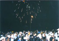 10メートルくらい後ろの方の人たちは、花火に見とれて始まったことに気づかない。まあそれほどに立派な花火だったんですが。トロトロと動き出す大きな塊の集団。ああ、これがホノルルマラソンの有名な大渋滞スタートかあ、と初めて目の当たりにした私は感激。でもホントにみんな楽しそうで、やっぱりイベントは参加するべきよね、とあらためて実感したんです。