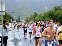 マラソン前の一週間は本当に天気が悪く、雨が降ったり、湿気を含む曇りの天気が続いたりで、街中にあふれ出した仕上げ段階のランナーたちも心なしか浮かない顔。当日は晴れてくれればいいのに、と思うんだけど、ランナーさんたちに言わせれば、曇っている方が走りやすいそうです。やっぱり常夏のハワイだから、いったん陽が昇ってしまったら、灼熱の太陽に照らされて、体感温度が急上昇するんでしょうね。 何を隠そう、ホノルル生活も数年目を迎えるという当レポーターですが、実際にホノルル・マラソンの一部始終を見るのは今年が初めて。一部では、あれは日本人だけのお祭り騒ぎで地元は無関心なんだ、なんて言う声も聞かれますが、いえいえ、それは大きな勘違い。地元出身のランナーが8000人にものぼるし、何よりも3万人とも言われるボランティアのほとんどは地元の人々。人工100万人にも満たない島国でこれだけの人が夜中から集まるんだから、それこそオアフ島最大のイベントのひとつなんです。テレビやラジオ、新聞などでも盛んに盛り上げてるし、併設イベントもたくさん企画されています。それは一度この時期にワイキキへ来てみれば一目瞭然ですよ。