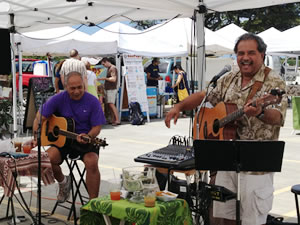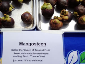 ■すがすがしい空間♪ 最近、「ファマケ♪」こと、ファーマーズ・マーケットがとても人気ですね。ハワイでもその数がどんどん増え、色んな所で開催されています。これから、毎月、「ハワイのファマケ♪」とそこでみつけた掘り出し物を紹介したいと思いま~す。 記念すべき第1回は、「アラモアナのファマケ♪」です。アラモアナセンターの駐車場の2階西側に、毎週土曜日の朝8~12時まで開催されています。私が訪問した日は、太陽がさんさんと輝いて、そうでなくても広い2階の駐車場がとても明るい空気で包まれていました。2階の駐車場から、アラモアナパークとキラキラ光る海も見え、なんとも清潔で解放感のある空間なのでしょう。 入口に入ってすぐのパラダイス・エキゾチック・フルーツという果物屋さんのテントの中に、大好きな果物をみつけて大感激! しょっぱなから興奮状態です! 東南アジアで果物の女王と呼ばれる、あの甘酸っぱいマンゴスティンがあったので~す。東南アジアへ久しく行ってないし、日本で冷凍の物は食べたことはあったけど、やはり新鮮なのが美味しい! 取材のつもりがさっそくお客さんになってしまいました。 他には蘭を売っていたり、香ばしい香りのするパン屋さん、かわいいカップケーキ屋さんがあったり、(←さんづけしないと気が済まない関西人)コーヒーも売っていたり、それはよそのファマケ♪と変わらない店舗展開ですね~。でも一味違うのが、マーケットの中央にテーブルと椅子がたくさん並ぶテントを用意していて、ミュージシャンが演奏をしているのです。この清潔で解放感のあるファマケ♪で音楽を聞き、お店を1つずつ覗き、買ったお料理を食べながらお喋りを楽しむ人達。なんとも清々しい、土曜の朝の光景がありました~。 皆さん、食後はきっと、アラモアナセンターでショッピングを楽しむのでしょうね。 後編につづく… (2012年4月更新) |