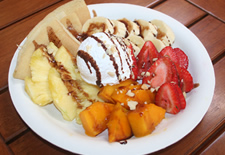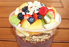 新鮮さとクオリティーの高いフルーツ料理のお店。オーガニックのフルーツのみを使ったアサイボウルは$9.95。甘味料をいっさい使用せず、新鮮なフルーツの甘さを堪能できるスムージーは$5.95。注文後に作るクレープもフルーツたっぷりで$10.95です。生花のレイ、ヘアピース、コサージュなどもここで作っており、前の日にカタログから選び、注文もできます。値段は$9から。