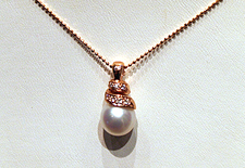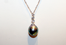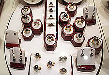 南洋、タヒチ、アコヤ貝などの厳選された最高級真珠を、色、サイズともにバリエーション豊富にそろえています。人気の14金ピンクゴールドと南洋真珠のペンダントには合計0.09カラットのダイヤモンドがついて$520。タヒチの黒真珠とホワイトゴールドの組み合わせのネックレスには0.048カラットのダイヤモンドが。これも$520。セールコーナーの商品は40%引きになっています。