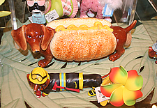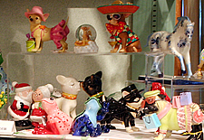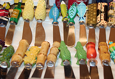 お店の中に入った瞬間、思わず笑みがこぼれるユーモアのあるおしゃれな物でいっぱいです。テーブルクロスやプレイスマット、バスグッズもそろいます。ホット・ダックスフンドの貯金箱($79.99)、シーハーしている表情がなんともほほえましい動物のつまようじたては$17.99。楽しい絵柄のバターナイフはセットで$19.99、1つで$5.99です。