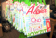 お手ごろ価格のお土産がいっぱい詰まったお店。日本語を話すスタッフもいます。Alohaシリーズの小物は$4.99から。ラブリーなビーチサンダルの消しゴムは$1.99です。お手ごろ価格のハワイらしいバッグもたくさんあります。ハワイならではの色々な言葉がプリントされたエコバッグは1つ$3.99ですが、お買い上げ金額が$40以上の方にはもれなくプレゼントしてもらえるそうです。