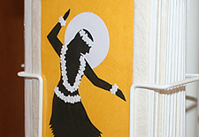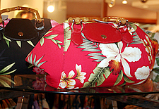 バスグッズからベッドカバーのハワイアンキルトまで、全てオーナー自身のデザインによるオリジナル商品です。どの商品にも細部にいたるまでのこだわりを感じさせます。ハワイアンキルトの小物入れは$11.95から。クッションカバーは$45から。貼り絵風のハワイならではのオリジナルカード($3.75)も人気です。
