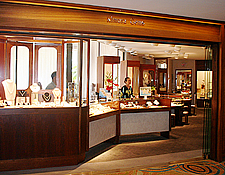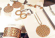 イタリアン・ブランド、「レベッカ」のジュエリーが豊富なお店です。素材はスターリング・シルバーとピンク・ゴールドがあり、イヤリング、ネックレスが$250から。イエローゴールド希望の場合はスペシャルオーダーで1ヶ月でできあがります。アルマーニのピエロや動物の置物はシルバー、もしくは陶製で$150から。