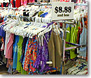 気になる値段は、たとえばスカートが$9.99〜29.99、ジーンズ$16.99〜34.99、トップス$3.88〜24.99とセール品のよう。新作は週末を除いて毎日入荷して来るので、ハワイに長期滞在する人はこまめにチェックするといいかもしれません。定価がセールプライスのようなのに、さらに$5.88、$7.88均一のセールラックも常設。時々セールもしているのでさらに安くなったりもします。