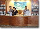 「ラシャス・ビューティー・フレグランス・オイルス」はアラモアナ・センター1階に7月中旬オープンしたばかりですが、スパやギフトショップ向けのホールセラーとして6年の実績を誇っています。ここで取り扱うエッセンシャル・フレグランスオイルは全てハワイ産。それだけに、ハワイの花や植物、フルーツから採取したエキスを配合した香りが勢揃い。香りはハワイアン、ハーバル、フルーツ、フローラル、デザイナー系の5ライン。そのうち、ローションやシャンプーなど、フルライン揃っているハワイアン・ラインは、ココナッツ、ハイビスカス、グアヴァなどお馴染みの香りからシーシェル、ウォーターフォール、レインフォレストといったテーマものまで、何と60種類の香りがあります。ここの製品は自然成分だけで、アルコールや薬品を使用していないため、お肌が弱い人にもオススメです。グリーンのボトルは暑さ、寒さ、光から中身を守る特殊なもので、2年間の品質保証付き。スパにも卸しているというマッサージオイルをはじめ、ローション、ミスト、グリセリンバー、キャンドル、シャワージェル、シャンプー&コンディショナー、バスクリスタルまで同じ香りで統一されているのも楽しいですね。 |