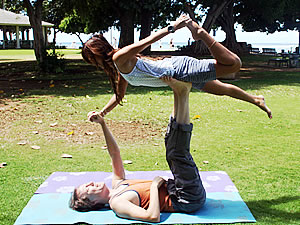 「 指圧&マッサージセンター」で「ようこそ」と涼しげな面もちでゲストを迎えてくれるのは、オーナーのデニス・ミラー氏。まず、その不思議な姿勢に目が… 丸いヨガボールに腰掛け、両脚は宙に… 「簡単だよ、ホラ」と日本語ですすめられ、そのフレンドリーさにつられて、うっかりトライしてみるものの、身体はボールごとコロコロと転がるばかり。その間も、デニス氏は驚異的ポーズでリラックスのご様子。それもそのはず、ミラー氏は、プロのダンサーという別の顔を持っているのです。素晴らしいバランス感覚も、日頃の鍛錬の賜物だったのですね。ダンス歴約20年というミラー氏は、ハワイのコンテンポラリーダンスカンパニー「イオナ」の団員として、現在も活躍中。「身体が資本」のダンサーだから、ボディトリートメントには人一倍気を遣う毎日。今では、ほかではなかなか体験できない「ヨガ整体マッサージ」や水中マッサージ「オーシャン・マッサージ」など、多彩なマッサージ法を提供。健康面で悩みのある方は、ボディケアのスペシャリストにアドバイスを求めてみてください。 ◎スパ・ピュア