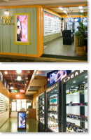ショップ内はブランドごとにディスプレーされていて見やすく、好感度は大。取り扱いブランドは、ブルガリ、プラダ、シャネル、アルマーニ、グッチ、フェラガモ、ディオール、ラルフローレンといったファッション系と、レイバン、オークレー、Revo、キラーループといったスポーツ系。最新スタイルは月2回ほど入荷してくるそうです。今最もホットなアイテムとしては、映画「MIB(Men in Black II) 」でエージェント・ケイとエージェント・ジェイが着けているレイバンの「プリデター」。エージェント・ケイの「プリデター2」はレイバンの定番スタイル。エージェント・ジェイの「プリデターJ」はこの映画のために特別にデザインされたもの。ショップで試し、お気に入りを見つけてくださいね。 |