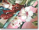 ハワイアン・プリント生地は2階の左奥、リボン売り場の隣りにあります。生地の種類は多くはありませんが、併せてアレンジしたいラウハラ・バスケットや、シェル、コアオーナメントが充実。ありきたりなハワイのお土産もラウハラ・バスケットに入れてシェルやオーナメントで飾りつけるだけで、とっておきのオリジナル・ギフトに! また、誕生日や出産などのギフト・ラッピングに活躍しそうな、アメリカ的「大味で微笑ましい」オーナメント類もぜひ押さえておきたいところです。2階フロアの4分の1を占める造花コーナーには、「プロテア」や「トーチジンジャー」などハワイならではの草花が多数あり、水やりの手間要らずで枯れない造花はお部屋のアクセントにピッタリです。 |