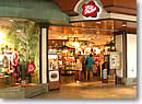 ◎プリンセス・カイウラニ・ファッションズ ダウンタウンを少し西へ行くと、ディリンハムのホノルル短大近くに、創業44年の歴史を持つ「プリンセス・カイウラニ・ファッションズ(PK)」が見えてきます。エントランスをくぐると、そこはもうムームーのオンパレード。カラフルで主張のあるハワイアン・プリントの賑やかさに早くも目がくらみそうですが、有難いことに、サイズごとにラックが別れているので、本当に気合いを入れて見ないといけないのはワンコーナーという訳です。それでも、数十種類はあるデザインと生地を選ぶことになってしまいます。「そうなると、同伴者に忍びないなあ…」というあなた! PKではお連れの方も、くつろいだ気分でショッピングのアドバイスができるようにと、座り心地の良いカウチでのコーヒーサービスが用意されています。 |