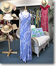 袖の膨らみとレースやフリル使いが特徴的なトラディショナル・スタイルは、フラのダンサーや年輩の方に人気。レーシーでフリフリなデザインにためらうかもしれませんが、実際に着てみると意外と似合うということがよくあるので、とにかく何でも試着してみてくださいね。試着室は入口右手奥にあり、広々として居心地も満点。お店のスタッフに、「同じスタイルで違う色を」とか「ワンサイズ大きいのを」など気軽にリクエストしてください。また、「これもムームー?」と聞きたくなるようなスタイリッシュなコンテンポラリー・スタイルは20代、30代に人気。シルエットを美しくみせるシンプルなデザインが好評です。ハワイでの結婚式にムームーで出席してみるのも素敵ですね。既製服の予算は$130前後をみておいてください。 |