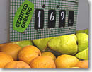 ショップ内は大きく分けて、食材、デリ、サプリメントの3セクションから成り、ロフトにはデリをその場で食べられるようにテーブル席が設けられています。食材コーナーには果物や野菜、インスタント食品、調味料、お菓子、シリアルなど、普通のスーパーマーケットに見られる商品が一通り揃っています。が、そこはやっぱり「ヨガ生徒御用達」のお店。「オーガニック」が基本で、野菜や果物などのオーガニック商品にはプライス・プレートの横に「Organic」とラベルが貼ってあるのでご参考に。また、調味料やシリアルなどは、大抵商品それぞれに何パーセントがオーガニックであるか、を表示してあるので、注意して見てみてください。