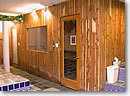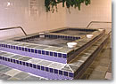 広々としたホット&冷水バス(上)、ドライサウナの入口(下) |