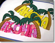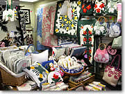 ■値段の秘密はホールセラーゆえ 店内に所狭しと並んだハワイアンキルトを見ていると、オーナーのリリーさんが日本語で「うちは卸だから安いのよ」とのこと。聞くと、ハワイでハワイアンキルトやその他のグッズのホールセールのビジネスを始めてもう17年余り。ビジネスの拡張に合わせてショウルームが必要になり、それなら一般客も卸値で買うことができるショップをワイキキにオープンしようということになったのだとか。 |
