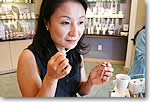 センティング・パーティーの所要時間は2〜3時間。そのうち最も時間がかかるのが香り作り。テーブルに着いたら、手渡された香りのメニューから「ピン!」とくる番号のものを選び、目の前に並んだフレグランス・オイルで香りを確かめます。この作業を何度も繰り返しながら香り作りのワークシートに好きな香りを10種類ほど記録しておきます。1種類でも、数種類を混ぜてみるなど自由に。ボディウォッシュ、シャンプーなどそれぞれ異なる香りにしてもいいし、同じトーンで統一してもOK。ここまで1〜2時間かかりますが、時間をかけることがステキな香り探しのコツ。出来上がったオリジナルの香りにはその人らしさが出るから不思議なもの。ほかの人が作った香りをシェアしてみるのも楽しいですよ。 |
