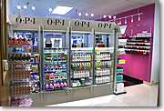人気のOPI、essie、CREATIVEをはじめ、プロ御用達のEzflow、セレブ愛用のJessica、体にやさしいZoya、老舗のOrlyなど、取扱いブランドの多さに感心。