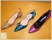 6. ブロケード素材がエレガントなパンプス”Marne”($975.00, 左)、光沢のある素材にクレセント型のバックルをあしらったパンプス”Carolynmod”($745.00, 中)、シンプルなパンプスもマノロ・ブラニクの手にかかるとこんなにエレガントに”Samra”($495.00, 右)