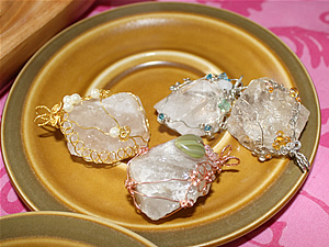 ■パワーも入って自分だけのオリジナル作品が完成! 創作にかかった時間は約2時間。皆でワイワイやりながら、楽しくあっという間に過ぎてしまいました。自分で選んだパワーストーンで、独自の感性とパワーも込められている本当に世界に1つしかないオリジナルなペンダント。愛着のようなものが湧いてきますね~。ナオコさんいわく、こうやってクリスタルと付き合っていると次第に石とのコミュニケーションもうまくとれるようになるそうです。