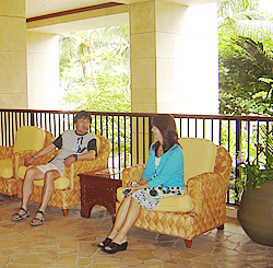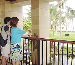 ■梶原:アメリカ本土やヨーロッパなどからいらした方が比較的に多いですね。日本人の滞在者はまだ少ないので、日本語が通じないことも多少ありますが、逆に日本人が少ない分、リゾート感が味わえますね。今晩、1階のガーデンで滞在者が全員招待されてのカクテル・パーティーが催されるんですよ。皆さんとお知り合いになれるのがスッゴク楽しみです!